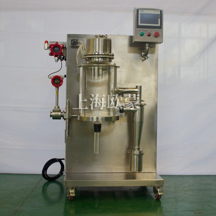 小型噴霧干燥機主要在科研階段對溶液或流體樣品進行噴霧干燥成粉或微小顆粒。其原理是通過霧化器將樣品霧化成微細霧滴,進入干燥室內(nèi)進行熱交換,水份瞬間蒸發(fā),固體經(jīng)過旋風(fēng)分離器進行回收,飽和氣體經(jīng)過除塵器過濾后排空,本設(shè)備可應(yīng)用于從試驗室到一般研究室的噴霧干燥作業(yè),在食品醫(yī)藥化工行業(yè)均可良好的應(yīng)用。
